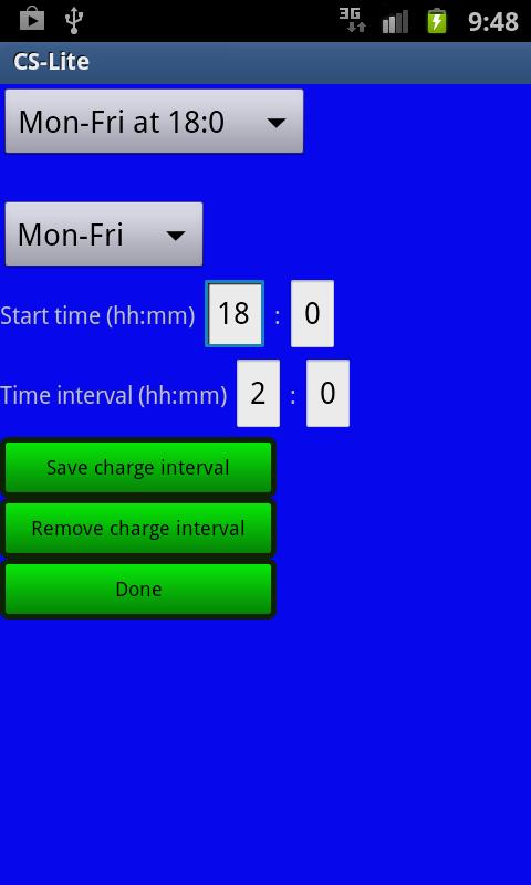 CS-Lite is the free version of Charging Servant. It has the limitation that time periods can only be defined for the weekday period Monday through Friday. To be able to define different time periods for different weekdays, upgrade to the full version Charging Servant.
