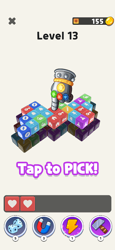 Abbina tre stessi cubi e avanza per cancellare il livello.