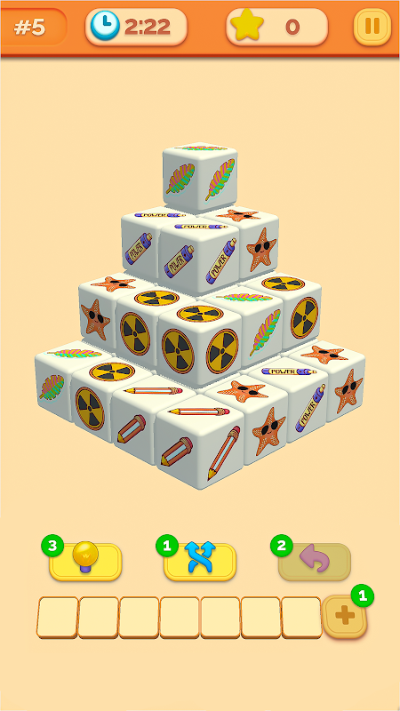 Cube Match 3D: Abbina caselle è un difficile rompicapo per grandi e piccini in cui dovrai abbinare tre caselle uguali!