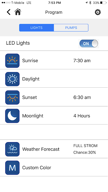 - Programma vostro programma di illuminazione quotidiana tra cui alba, tramonto, di giorno e di colori lunari