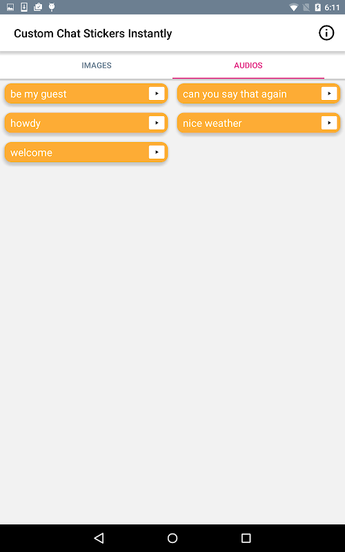 This app provides an easy way to store and manage custom chat stickers - your favourite image/audio that you reuse again and again in WhatsApp chat rooms.