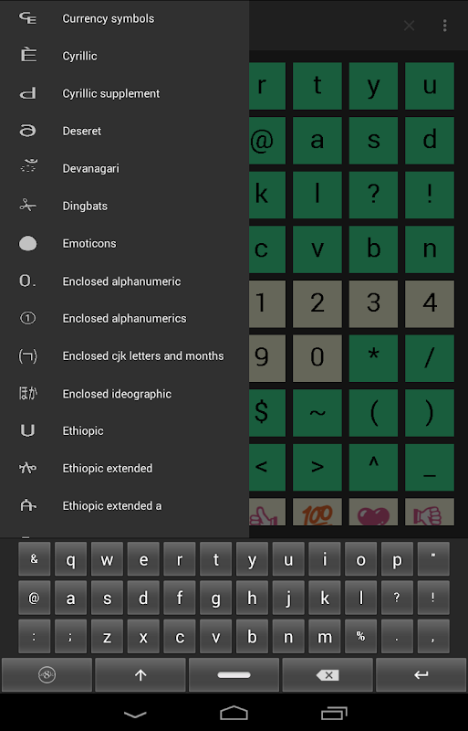 Questa è la nuova versione delle scorciatoie dei simboli, ora con la tastiera personalizzata completa aggiunta e tutti i personaggi della tabella Unicode ... e sì, incluso Emoji 😀