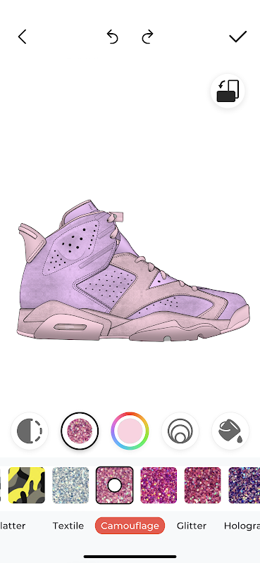 Una serie di opzioni crea infinite combinazioni e stili per tenerti occupato e la ruota dei colori integrata ti dà il potere di creare qualsiasi combinazione di colori che vedi sugli scaffali. Innanzitutto, scegli di spazzolare o spruzzare le tue scarpe da ginnastica con 5 diverse dimensioni del pennello e impostazioni di durezza. Oppure, se sei di fretta, usa la funzione secchio per dipingere interi pannelli con un solo clic. Una gomma e un'opzione per saltare avanti o indietro ti consentono di modificare la tua creazione e di eliminare eventuali errori finché non sei soddisfatto di ciò che hai fatto. Infine, decidi quanto vuoi che sia realistico il tuo design, con l'ombreggiatura prefabbricata a tua disposizione su una scala mobile. Diverse opzioni di texture ti danno la possibilità di utilizzare motivi come la fibra di carbonio e la stampa di elefanti o di scherzare con una gamma di materiali, dalla pelle di serpente al raso.