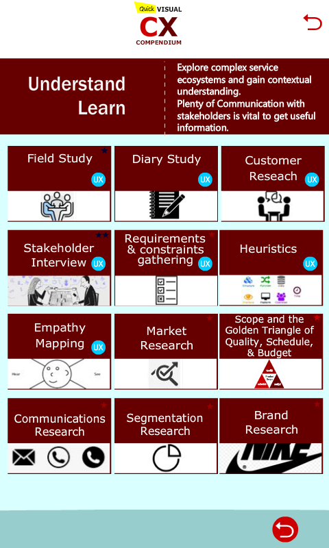 It has quick visual bricks of Customer Experience knowledge. It helps you to have a general understanding of different Customer Experience points you should know.