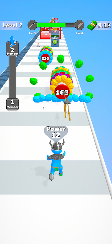 Man mano che migliori il tuo equipaggiamento, avrai accesso ad armi sempre più potenti, aprendoti la strada per diventare il combattente definitivo. Ma la personalizzazione non si ferma all'abbigliamento; partecipa a combattimenti emozionanti contro nuvole colorate di zucchero filato per abbatterle e reclutare nuovi personaggi al tuo fianco. Ogni vittoria aggiunge un nuovo membro alla tua squadra di guerrieri in crescita.