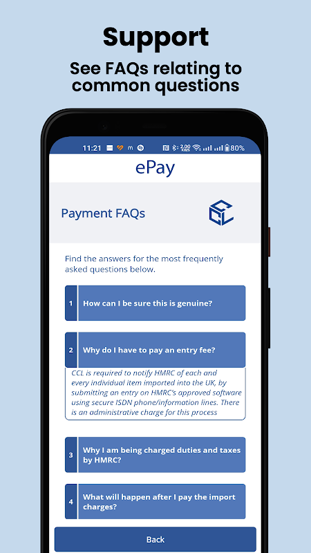 Sebbene Customs ePay possa fornire informazioni o servizi relativi ad attività o servizi governativi (ad esempio attività relative a dogane, importazione ed esportazione), è importante comprendere che CCL è un ente privato e la nostra app non è una piattaforma ufficiale di alcuna agenzia governativa o organizzazione.