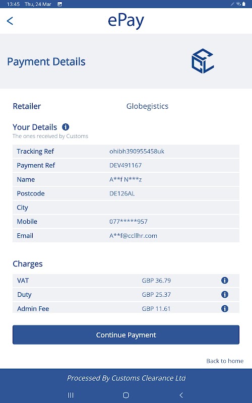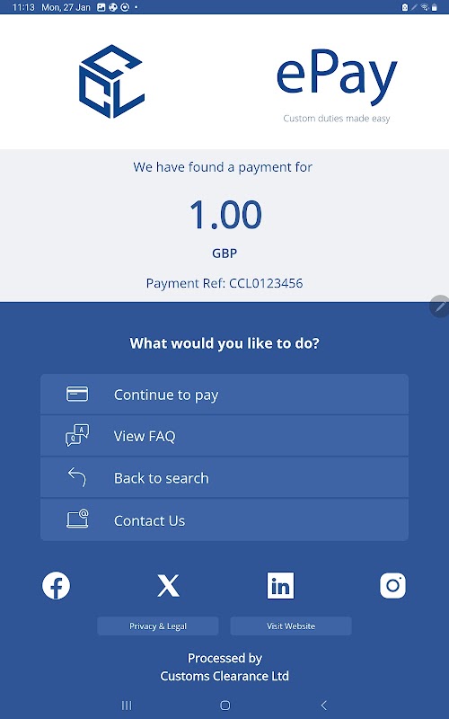 Customs Clearance Limited (CCL) e l'app Customs ePay non rappresentano un ente governativo.