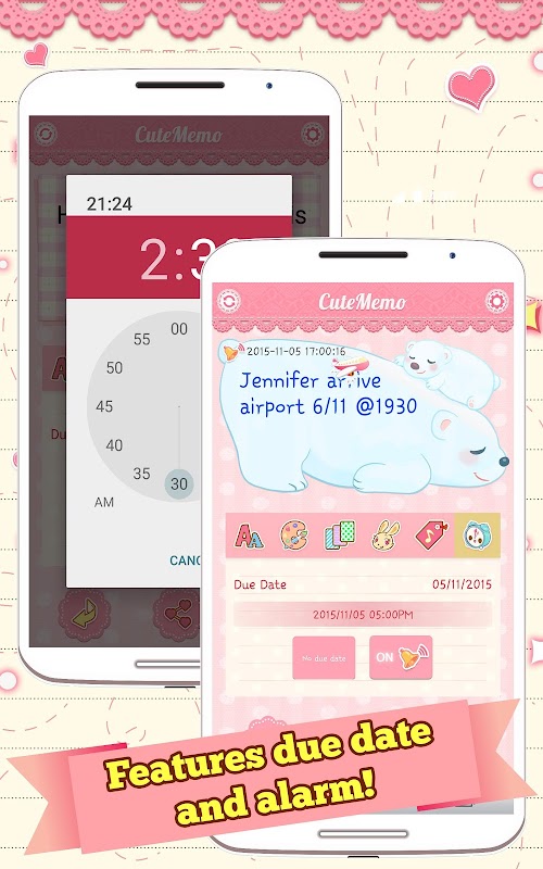 Personalize your notes by changing background themes, add some adorable stickers, or even use your own photos as your memo's background! Use the app to alert you of deadlines or important dates by setting an alarm to a memo. What's more, this memo widget app is unique that you can sync it with Google Task and Evernote.