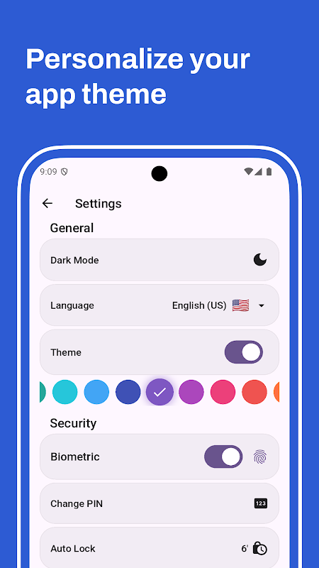 • Le note sono completamente offline e accessibili solo con il metodo di sblocco dell'app