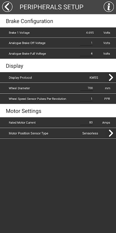 Questa app è compatibile con tutte le opzioni controller ASI (BAC855 o BAC2000) offerte da CYC Motor Ltd. Non compatibile con controller stock CYC.