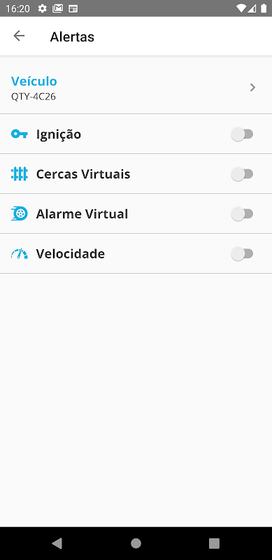 Com este aplicativo você poderá gerenciar o evento de alerta de ignição, que será acionado quando a ignição do seu carro for ligada.