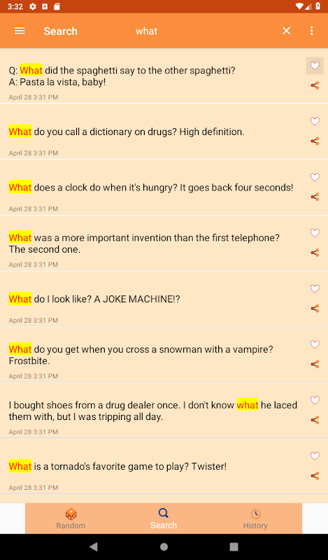 3. Vedi la cronologia di joke o aggiungili ai tuoi preferiti
