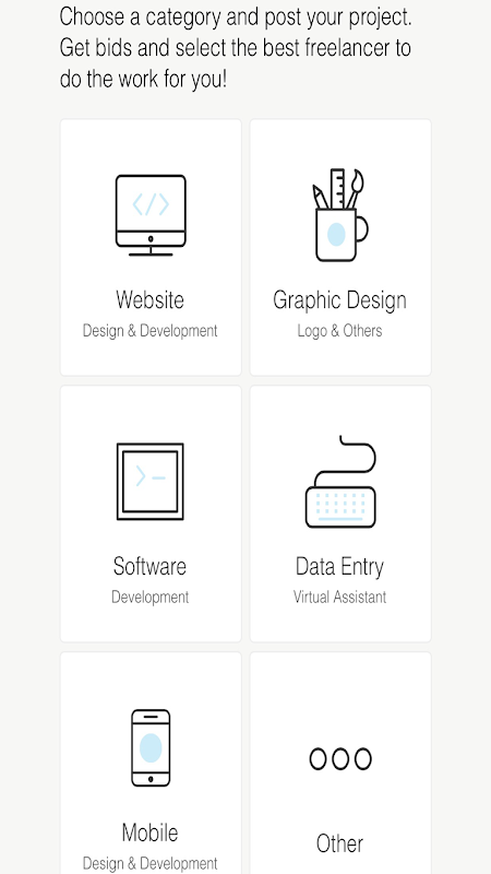 Post any project you need done and receive bids from our talented freelancers within minutes. Compare their proposals and price, then select the best freelancer to complete your project. Easy!