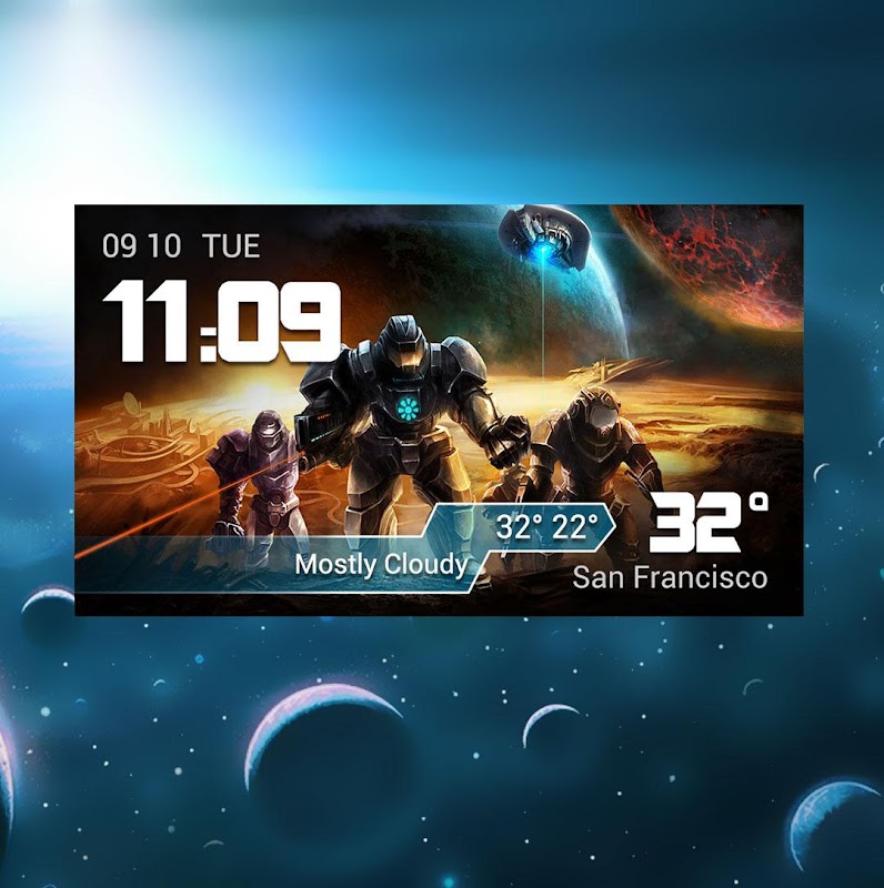 - molti temi widget tra cui scegliere:meteo widget animato,meteo live widget,widget orologio e meteo trasparente.