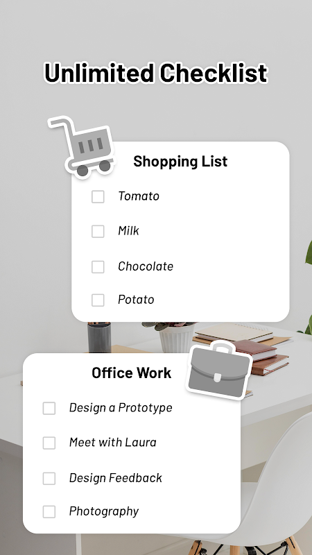 • Increase productivity! Make a daily to do list, create a reminder & share notes!