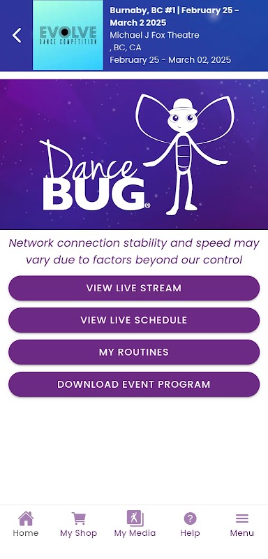 Guarda, godere, condividere - sempre e ovunque! DanceBUG è un applicazione accesso privato che consente di visualizzare in modo sicuro il vostro concorso di danza e video recital e foto da qualsiasi parte del mondo. Ricevi aggiornamenti in tempo reale e informazioni al vostro evento gara di ballo. Visualizza mappe, vedere gli orari, e ottenere le notifiche delle imminenti routine, il tutto nel migliore applicazione multimediale del settore danza.