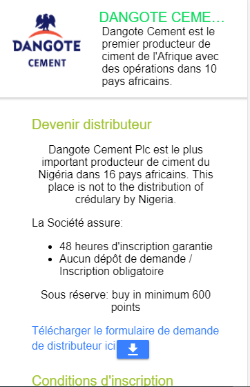 Dangote Cement Mobile est une application qui permet d'acheter vos ciments en toute simplicité