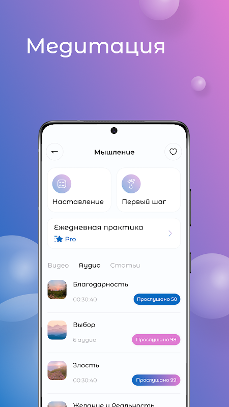 La nostra app Daria (Daria) è progettata come piattaforma per lo sviluppo personale e la meditazione, ispirandosi alle idee di Daria Butusova.