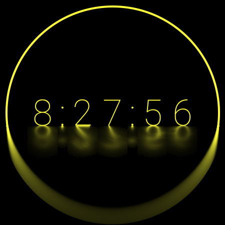 Un quadrante digitale semplice, minimale e moderno con un sottile riflesso delle cifre.