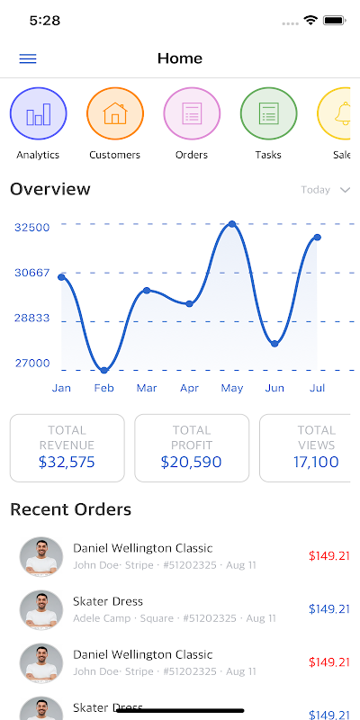 Download this admin dashboard app written in React Native to test out our beautiful fully functional React Native Dashboard app. The app is integrated with Firebase Auth & Firestore backend. It has screens for dashboards, charts, analytics, sales feed, etc.