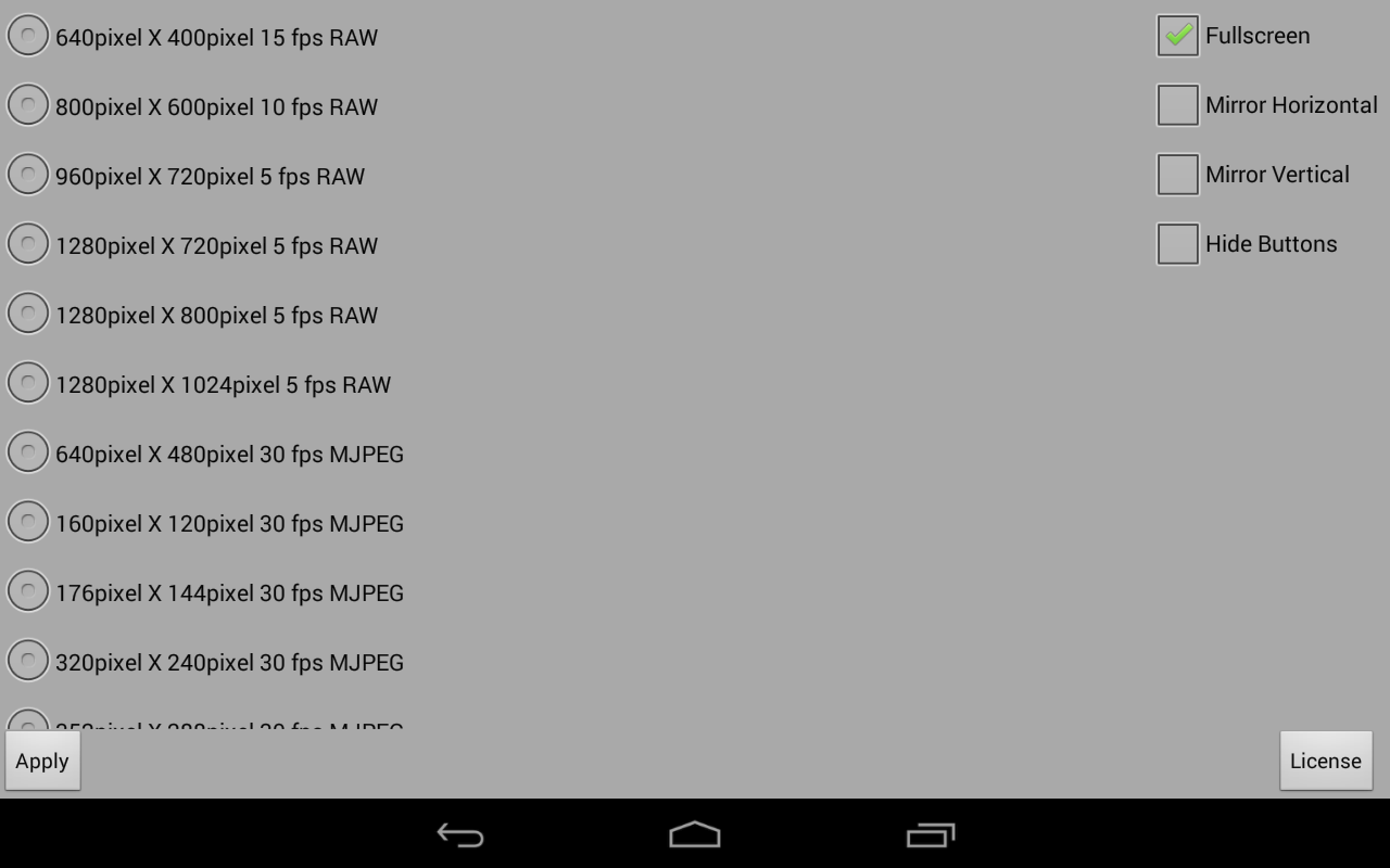 - All Resolutions the Camera supports