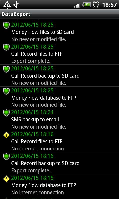 FILE, DIRECTORY, SMS, BACKUP TO SD CARD, FTP or E-MAIL