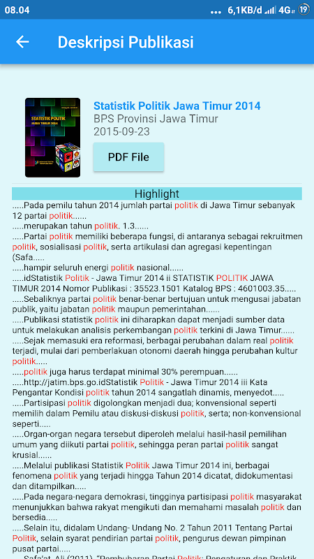 Aplikasi ini akan menampilkan publikasi-publikasi yang relevan dengan apa yang dicari pengguna dan pengguna dapat mengunduh publikasi tersebut.