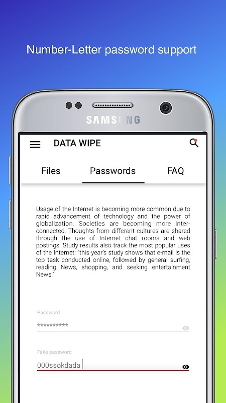 ★ Data Wipe Screen Locker is a specially designed app that can wipe data from your phone during an emergency situation.