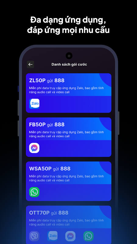 ✨ Supporto di diverse applicazioni: DataPlus non supporta solo applicazioni di intrattenimento come YouTube, FPT Play, Tik Tok, ma fornisce anche servizi illimitati per applicazioni di comunicazione come Viber, Messenger, Zalo, Whatsapp e applicazioni per ufficio come Gmail, Google Drive, Skype, Dropbox.