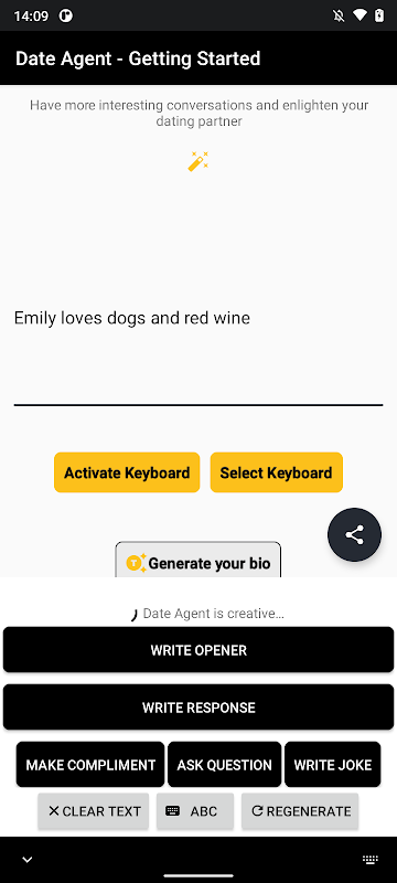 Hai idee e parole chiave in mente e non riesci a inserirle in frasi ben scritte ed eloquenti? Ti aiutiamo: abilita la tastiera Date Agent e usala in qualsiasi app preferita, come un'app di appuntamenti o un messenger e le tue conversazioni saranno migliori ♥️