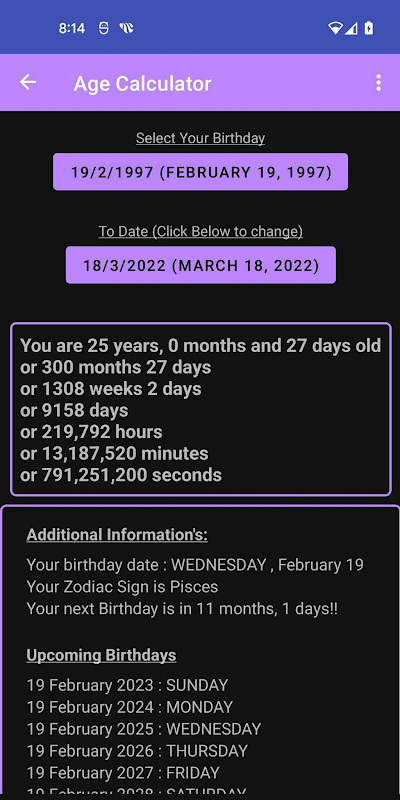 Se hai bisogno di una qualsiasi delle informazioni di cui sopra, l'app Calcolatrice della data è per te. È un'app molto semplice e leggera per calcolare il tempo. con questa app puoi fare facilmente le seguenti cose: