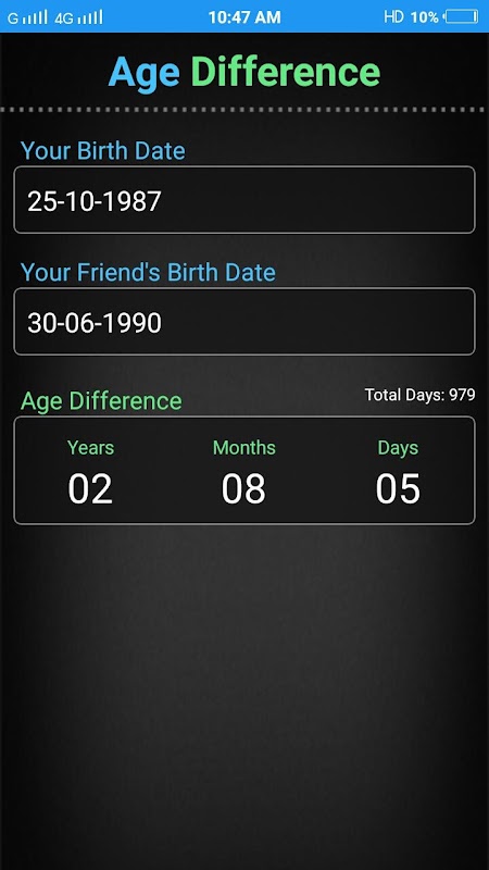 - Calculate your perfect age in year, month & day.