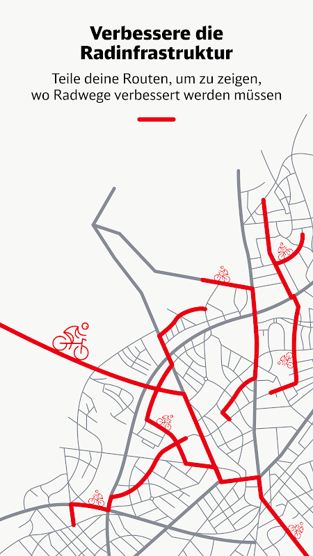 Non è necessaria la registrazione: scarica semplicemente l'app e inizia a pedalare! DB Rad+ ti mostra anche quanto sia significativo il tuo contributo alla protezione del clima e alla transizione della mobilità. I tuoi dati di percorso anonimi, insieme ai dati di molti altri, vengono integrati in una solida base per una migliore pianificazione ciclistica. Ogni uscita contribuisce a rafforzare la ciclabilità nella tua regione e a migliorare le infrastrutture.