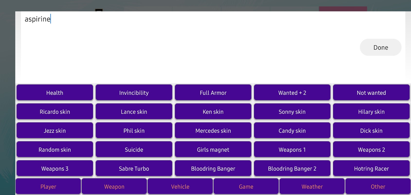 Tastiera per inserire in modo rapido e comodo e applicare codici cheat nel gioco