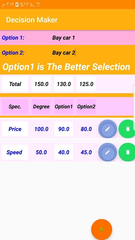 Impostando una specifica generale per le due scelte e impostando un punteggio per ciascuna specifica in base al grado di importanza e priorità dell'utente
