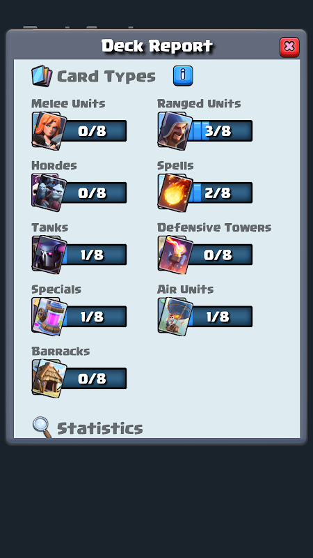 * User-friendly charts to help you visualize the statistics of your battle deck.