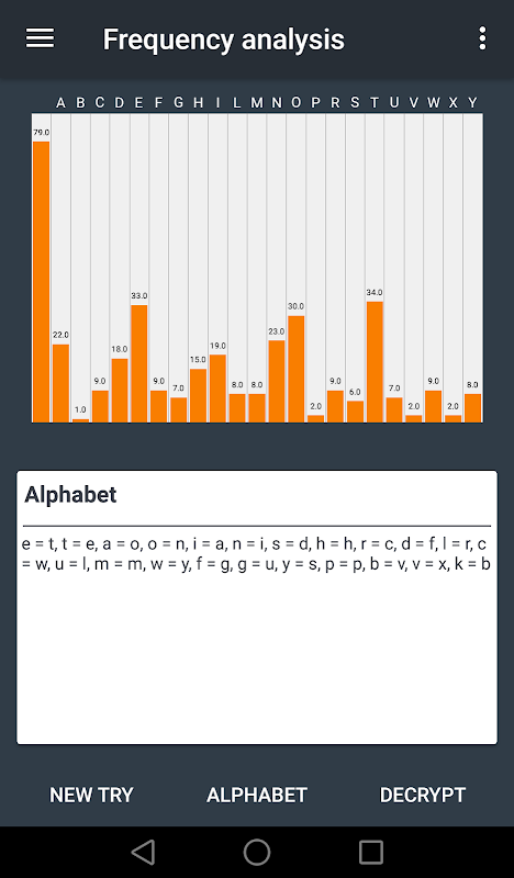 È inoltre disponibile uno strumento di analisi della frequenza per un testo crittografato. Puoi conoscere esattamente il numero di occorrenze di ogni lettera nel testo crittografato in pochi clic. Ancora meglio, l'applicazione può eseguire un'analisi di frequenza e sostituire ogni lettera del messaggio crittografato con la lettera più probabile!