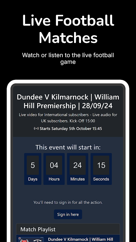 L'audio dal vivo è disponibile per ciascuna delle nostre partite di campionato nel Regno Unito, con il video dal vivo disponibile per gli abbonati internazionali. Tutti i nostri contenuti Pay Per View trasmessi in streaming tramite l'app Dee TV.
