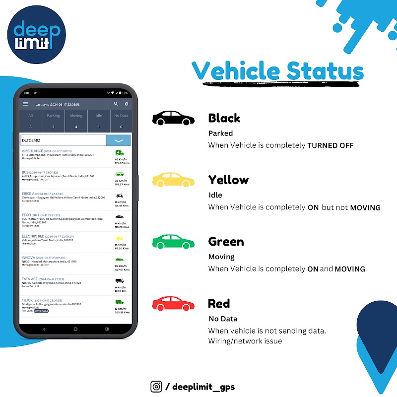 Noi di Deeplimit Technologie ci dedichiamo a offrirti una gestione completa della flotta e soluzioni di monitoraggio in tempo reale. Che tu sia una ditta individuale o una grande azienda, ti offriremo la migliore soluzione possibile con risultati garantiti. Tutte le nostre soluzioni, tra cui il nostro pioniere del software di monitoraggio, sono state progettate e create tenendo conto dell'utilità e della facilità dell'utente finale.