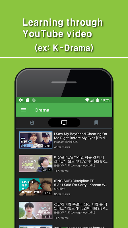 Per l'apprendimento delle lingue, vengono visualizzati principalmente i video con i sottotitoli. Se non ci sono sottotitoli, la funzione di apprendimento viene rimossa. (Funzioni fornite quando si aggiunge il contenuto della lezione in un secondo momento)