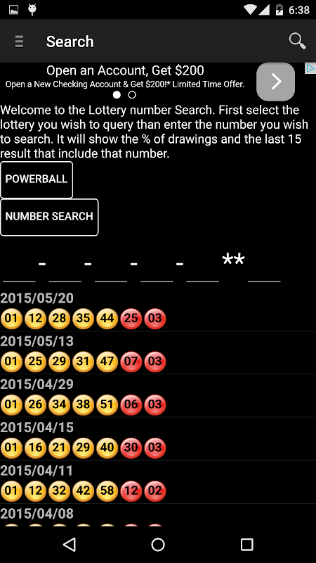Provides real time Delaware Lottery numbers. Includes Megamillions, Powerball Lottery Jackpot Estimates. It has a random lottery number generator. The random number generator has presets and a custom slot Look up previous drawings by tapping the listing. It has a lottery number search. Once you pick the type of lottery you can search for last time that number was drawn