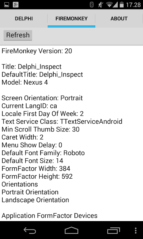 Created with Embarcadero RAD Studio XE6 using FM Multi Device cross-platform framework, this application shows all global variables and class properties from all System units and all FireMonkey platform services and "manager" classes.