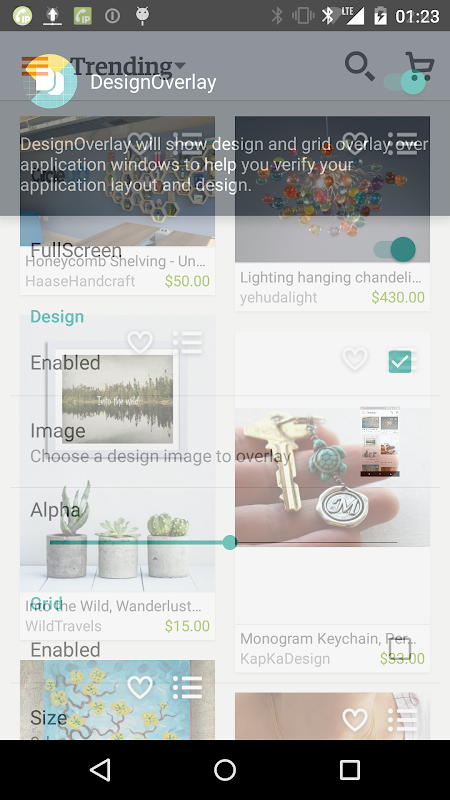 Mostra una immagine Disegno sovrapposizione w / griglia che consente di verificare il vostro disegno app