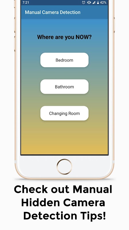 Our app provides the best feature of hidden camera detection and is the solution to detect hidden cameras and microphones. We use a specially developed algorithm to detect hidden camera around you. This app gathers the radiations from your surroundings and compare them with the radiations of a real camera. If they match we give you a warning alarm.