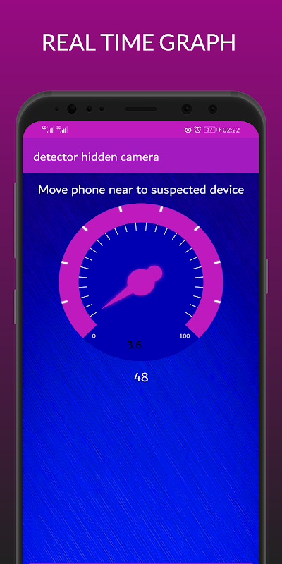 Hidden camera detector app is easy to use just move your phone around the room, office, changing room, or other places you doubt on, focus on a specific area where a camera might be hidden when the hidden camera detector app detects any ir camera or hidden objects it will start beeping and vibration.