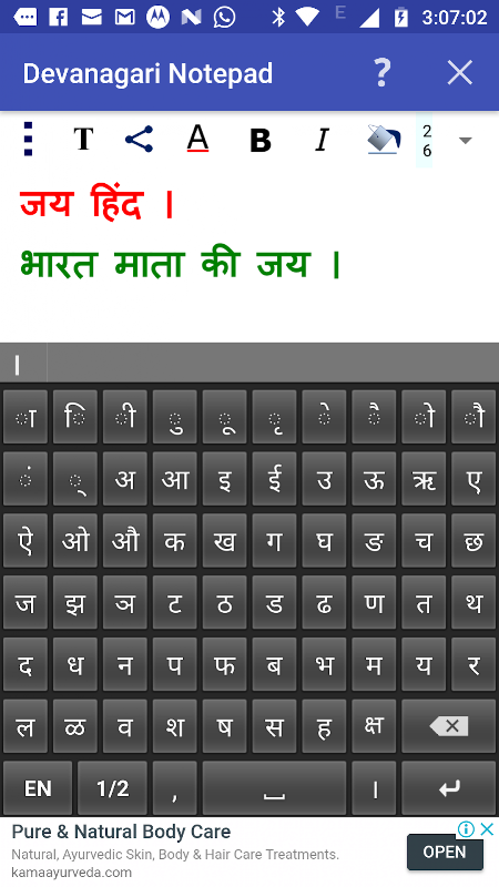 Hindi Notepad - Scrivere, inviare e condividere in Hindi, Marathi, Nepalese e Sanscrito