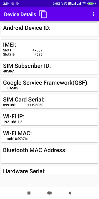 Informazioni sull'APK Device ID, IMEI, Wi-Fi MAC, BT