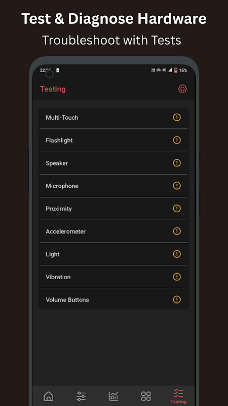 Analizzatore di sistema tutto in uno! Monitoraggio in tempo reale di CPU, RAM, batteria e sensori.