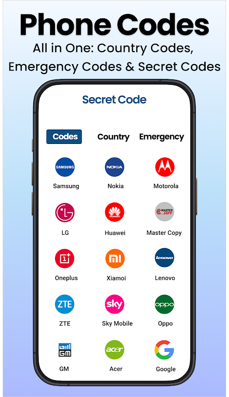 #️ Phone Codes: Access all Android mobile codes, country codes, emergency codes, area codes, and more device codes. Unlock hidden features with ease using phone codes and secret codes.