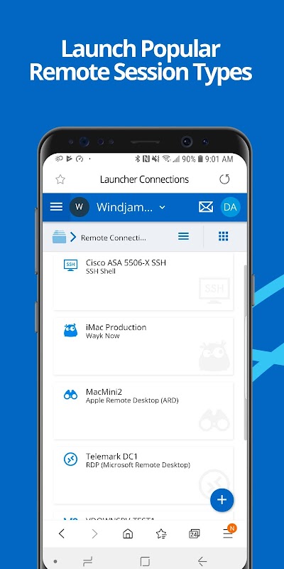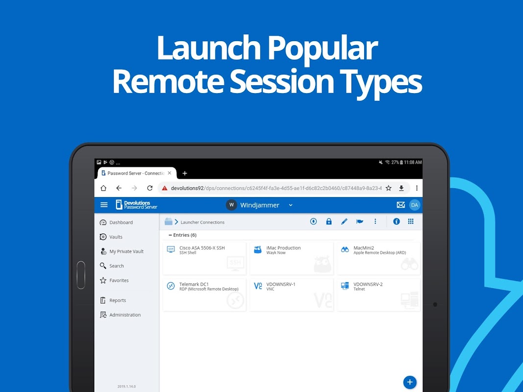 Remote sessions are launched using credentials from their vaults stored in either Devolutions Password Server or Devolutions Hub. When Launcher is combined with one of these two password management solutions, they form an easy-to-use Privileged Access Management (PAM) solution. Initiating a remote session with privileged accounts has never been this easy. Once the Launcher App is properly configured, users can easily start a remote session via the Devolutions Password Server or Devolutions Hub web applications. Credentials and remote session information are sent to the Launcher App which then opens the embedded remote session. All privileged information is encrypted and securely transmitted by the application's API using industry standard Application-To-Application Password Management (AAPM) protocols. Now IT professionals and system administrators can launch connections securely from their favorite mobile device!